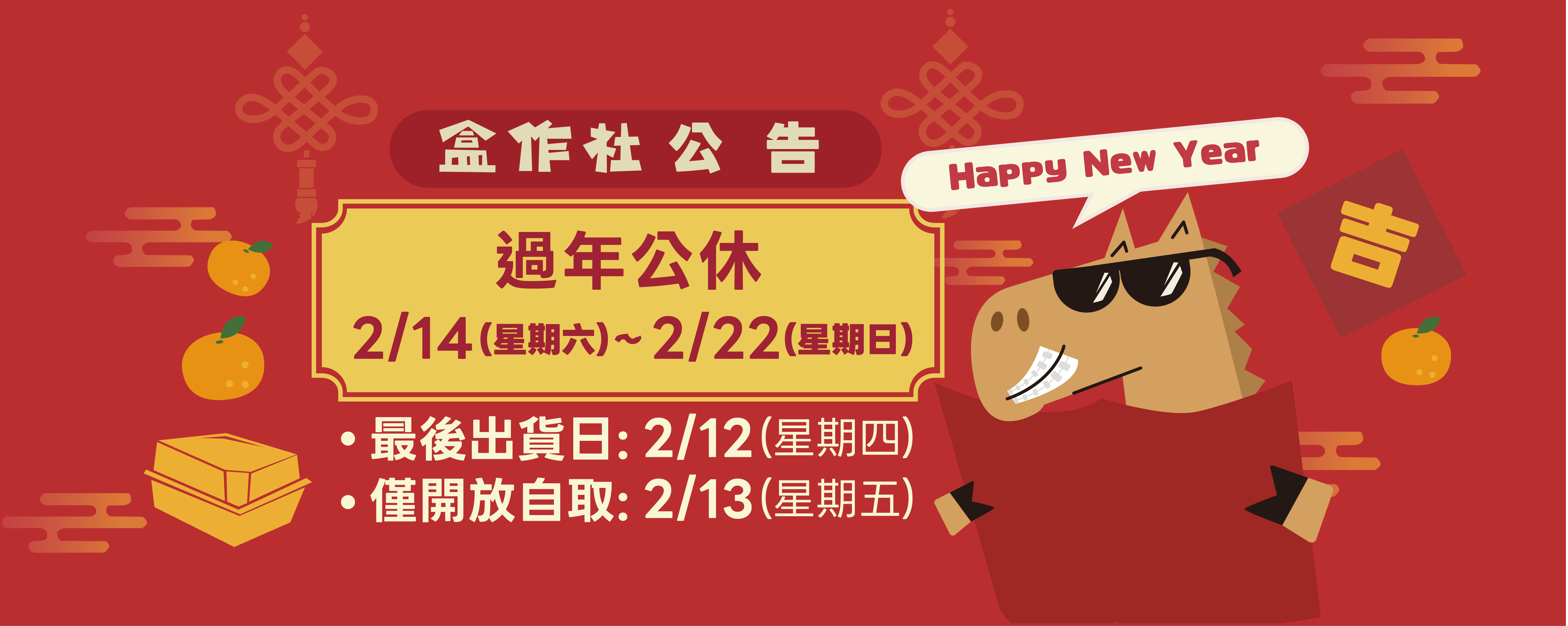 2026春節公休2/14~2/22|2/12最後出貨日