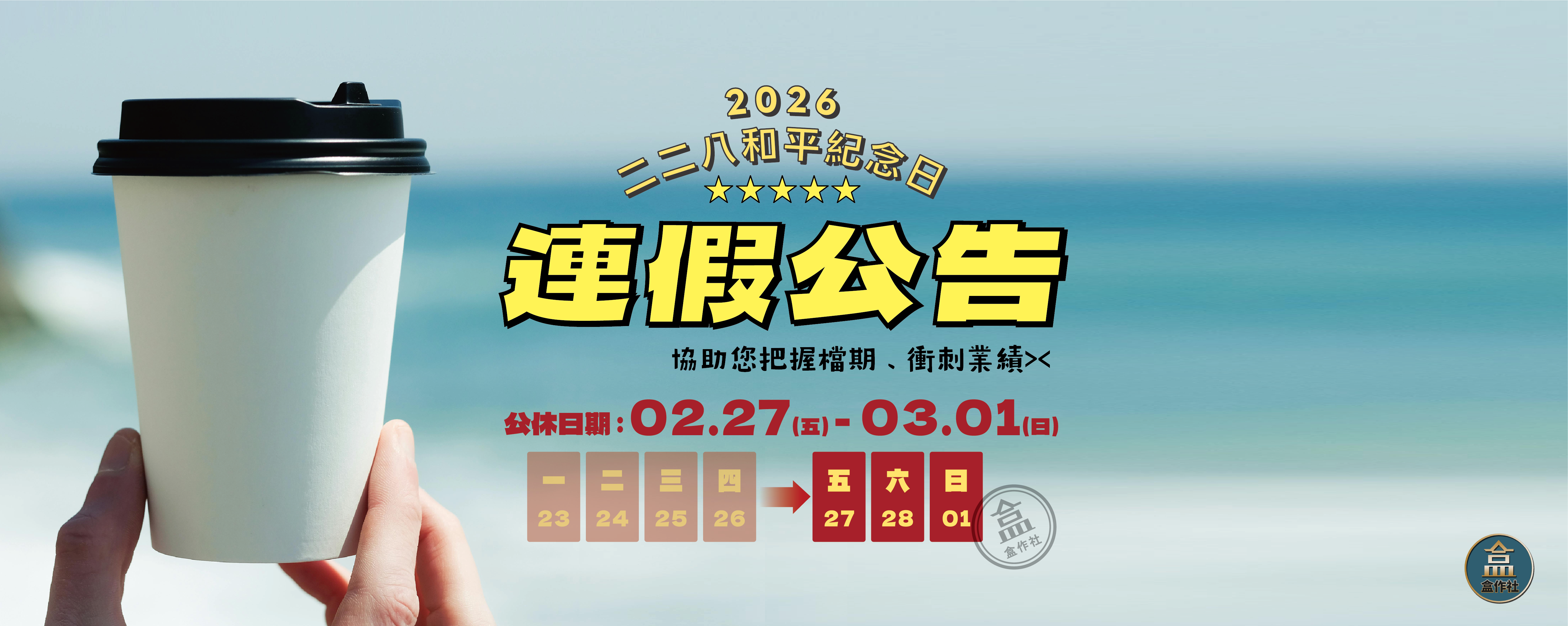 二二八連假公休公告「 2/27~3/01 」